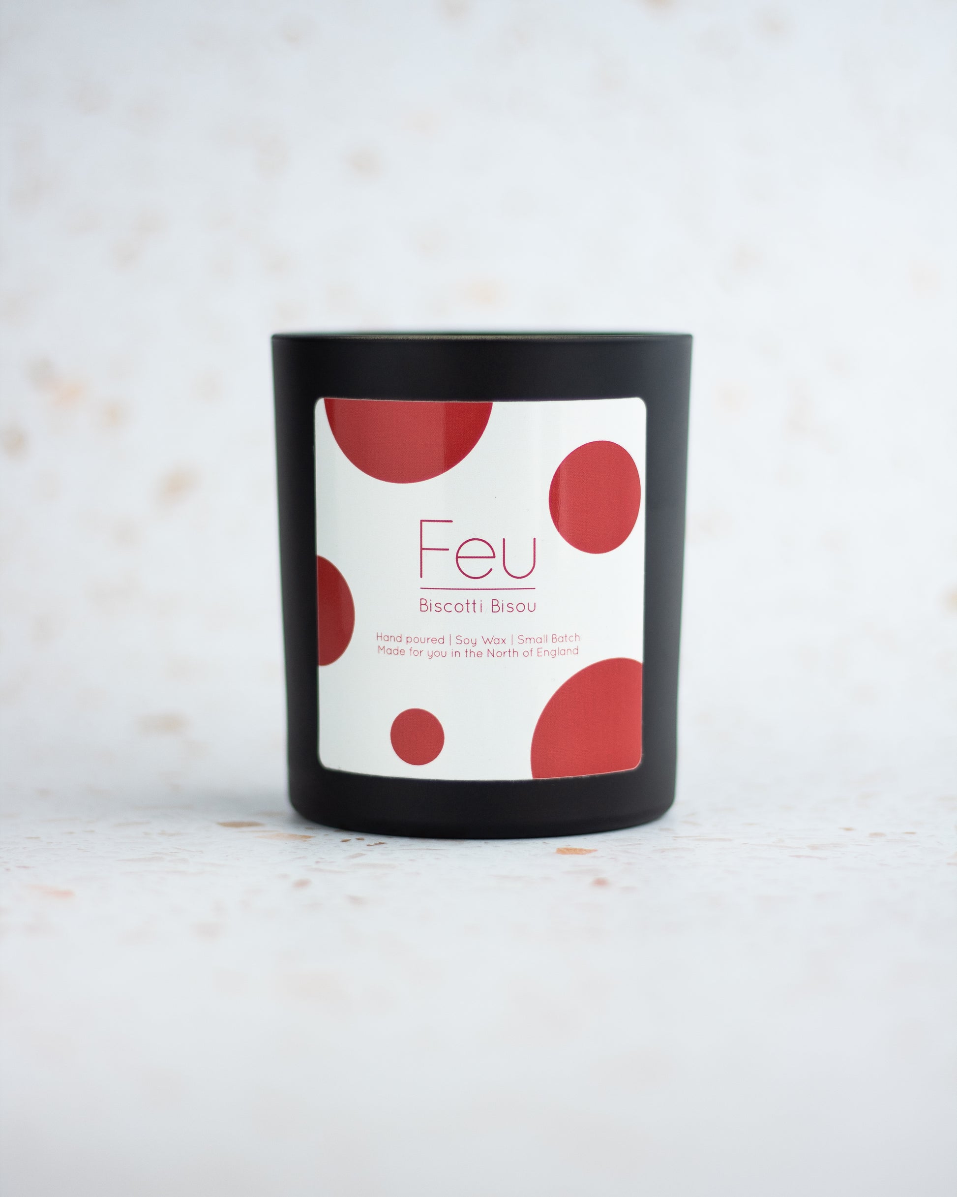 Our Biscotti Bisou candle, like all Feu candles, is made with soy wax, uses a wood wick for that gorgeous crackling sound, is hand poured and made in small batches in our Manchester candle shop.