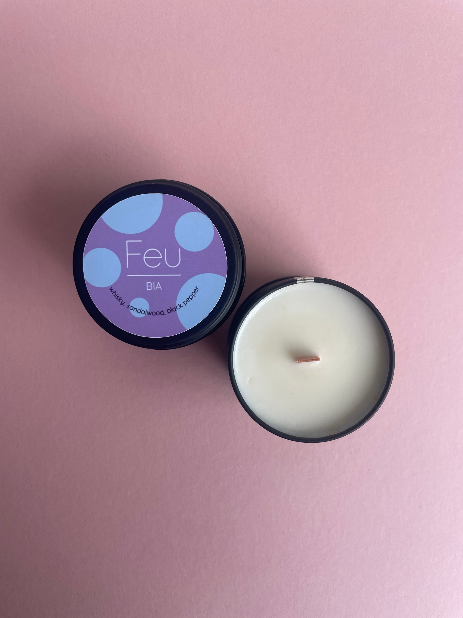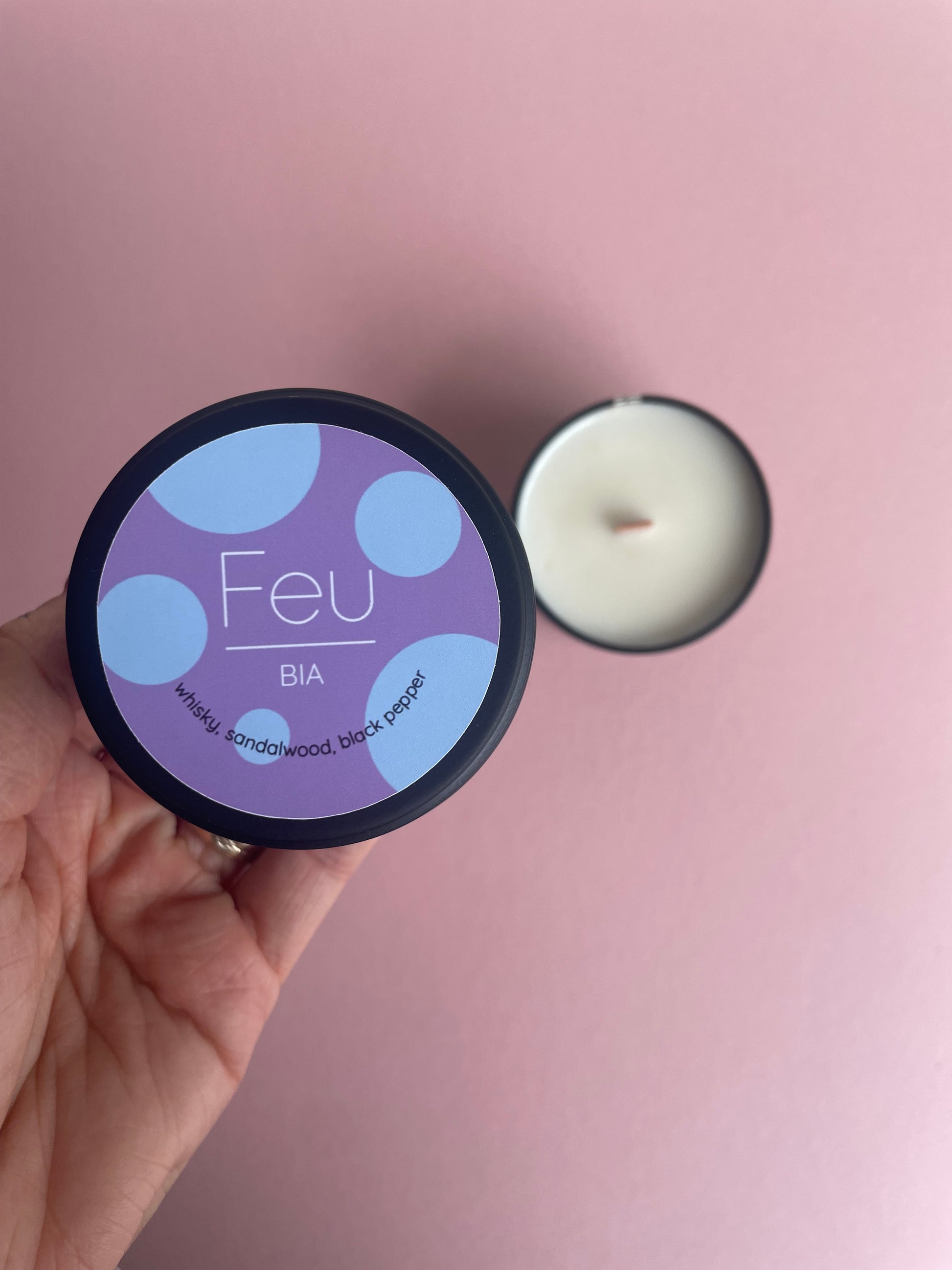 Light up Bia - a malted whisky with a smoky sandalwood and hot black pepper kick! Featuring a wooden wick, this soy wax candle is sure to light up your night, no matter how long the night lasts!