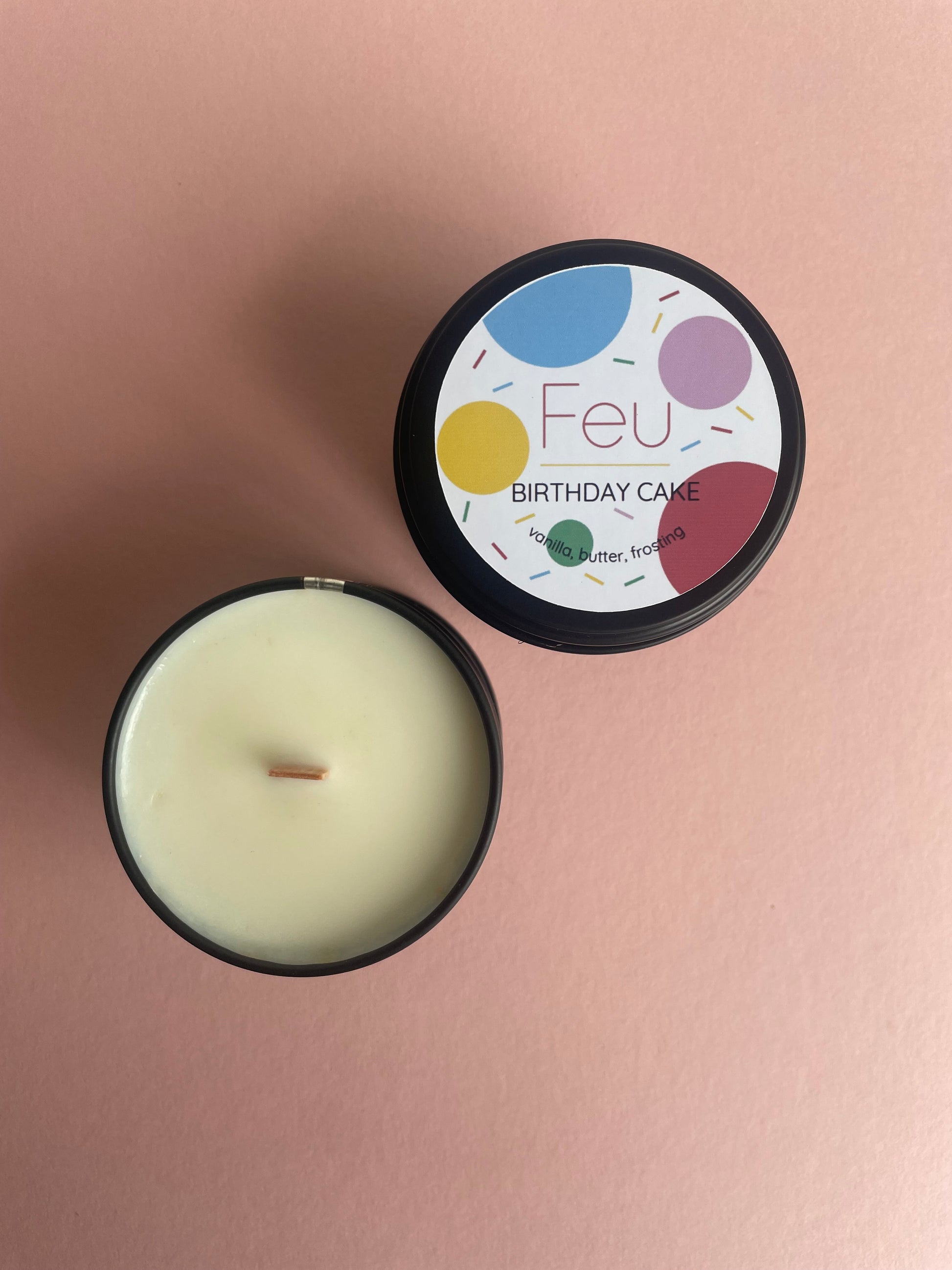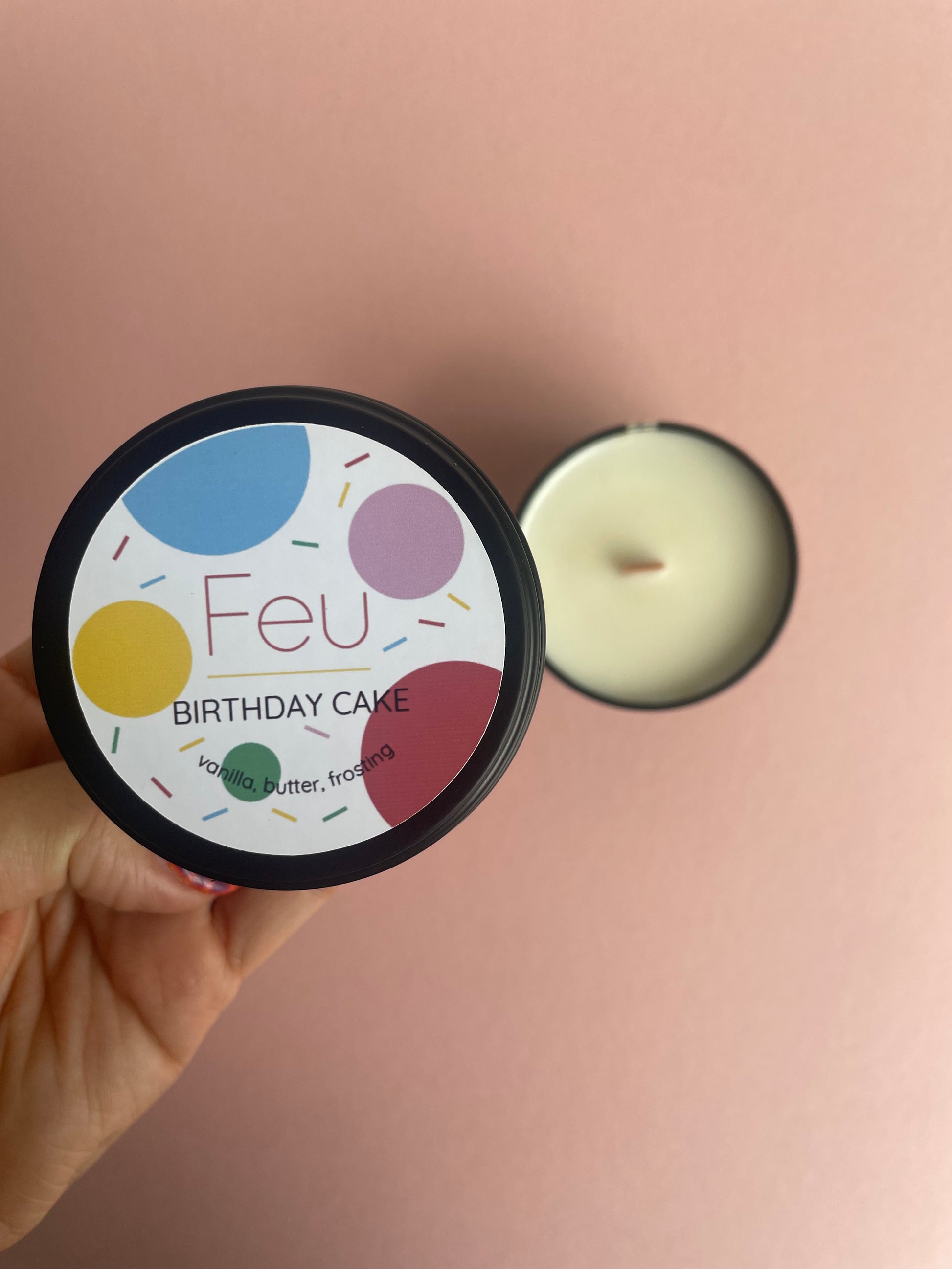 This is the new size of Feu 🕯️ these are matte black tins with lids that weigh approximately ~100g. These cuties last for 20+ hours ⏰