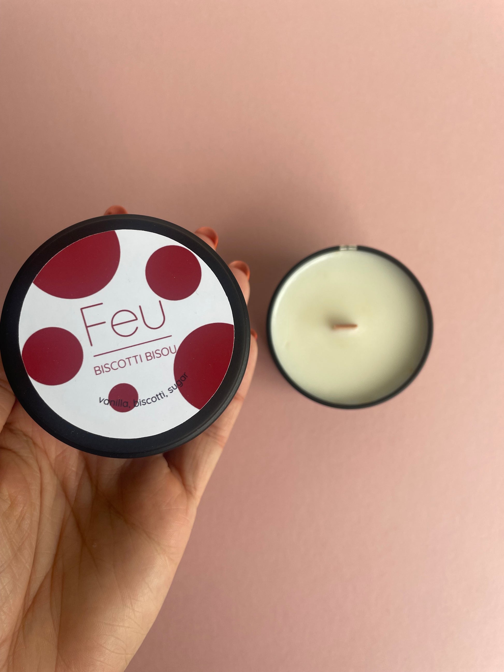 Treat your home to an aromatic experience with Biscotti Bisou! Our delectable, vanilla and biscotti scented candle has a long-lasting, fresh-baked scent that will liven up any room. You'll be dreaming of whacking the oven on and getting some cookies baked in no time!