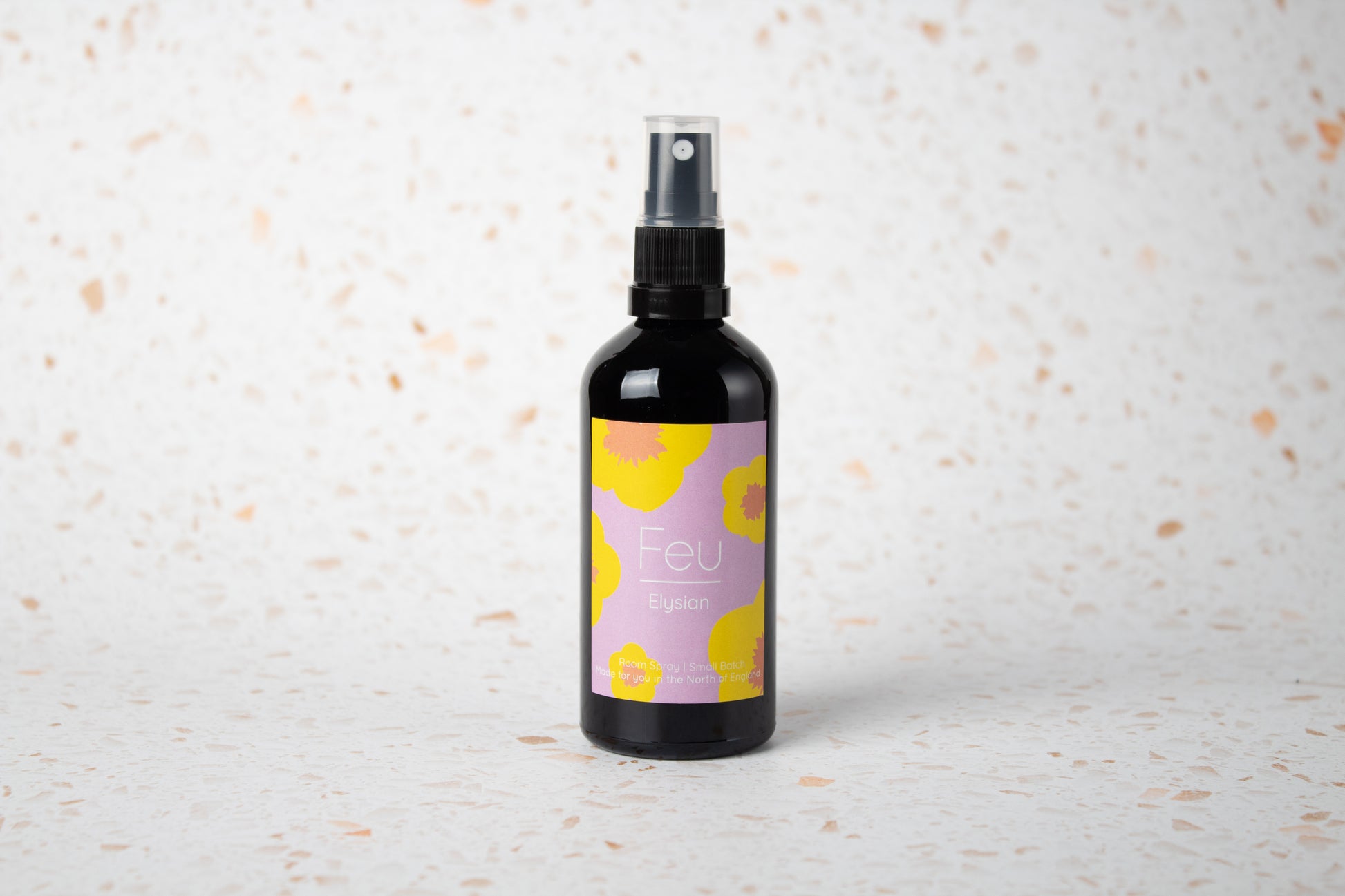 Feu room sprays are a blend of a clear, non-greasy, cosmetic grade oil and fragrance oils. I've chosen to offer the three scents that will fill your room but not be overpowering, so you can spray as little or as much as you'd like!